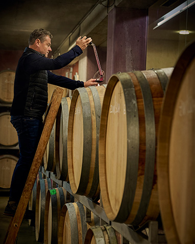 (500 L, 1200 L, 2500 L) verleiht den Weinen Tiefe, Struktur und Langlebigkeit.